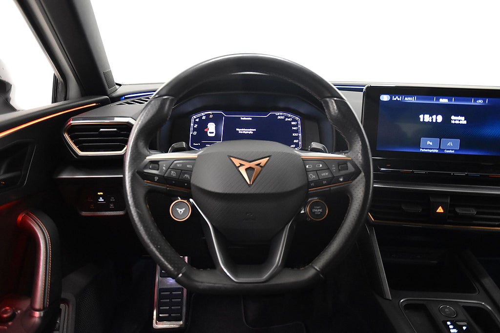 Denna bil är leveransklar och är utrustad med bla: Cupra Paket SP: Vision Plus + FULL Link El manöverad baklucka virtuel pedal, Rattvärme, Parkeringssensorer fram + Backkamera + Park assist, parkeringssensorer fram, radar, Apple CarPlay, Android Auto, Dragkrok, Cockpit, Sportstolar, Keyless, Farthållare, Navigation och mycket mer!