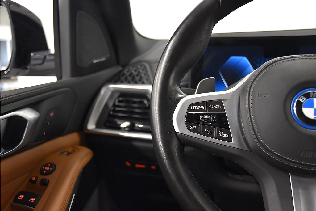 Med hela 490 hk levererar den avancerade plug-in hybriddrivlinan kraftfull acceleration samtidigt som möjligheten till eldrift ger låg förbrukning och hög komfort i vardagen. xDrive-fyrhjulsdriften säkerställer stabil och trygg framkomlighet året runt, medan M-Sport-paketet ger bilen ett sportigt och exklusivt utseende med detaljer både invändigt och utvändigt.